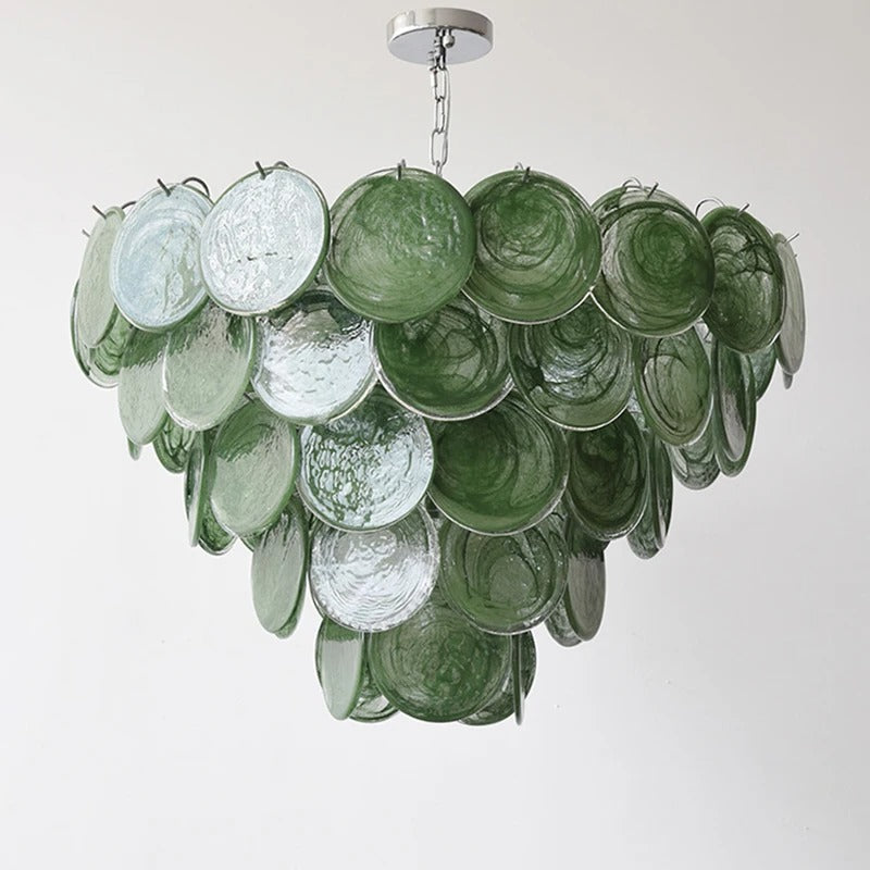 The ISABELLE Murano Green Glass Chandelier captures the artistry of French vintage design with the bold elegance of Murano influence. Crafted from high-quality glass and iron, it undergoes meticulous welding, polishing, and electroplating to achieve a refined finish. Its rich green glass shades add depth and character, making it a statement centrepiece in both residential and commercial interiors. Designed for use with LED E14 bulbs, it provides generous illumination across large spaces while embodying timeless luxury.