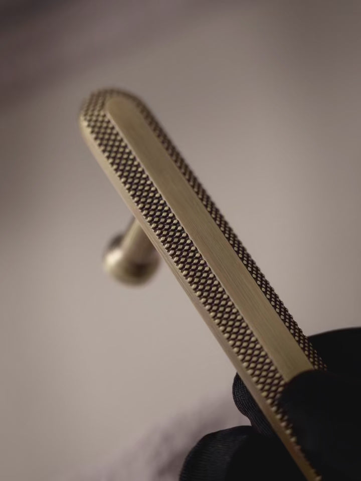 Crafted from high-quality solid brass with an antique bronze finish, these handles ensure durability while adding a sophisticated industrial-inspired touch. The knurled grid pattern provides a secure grip, blending style and practicality for a luxurious feel.