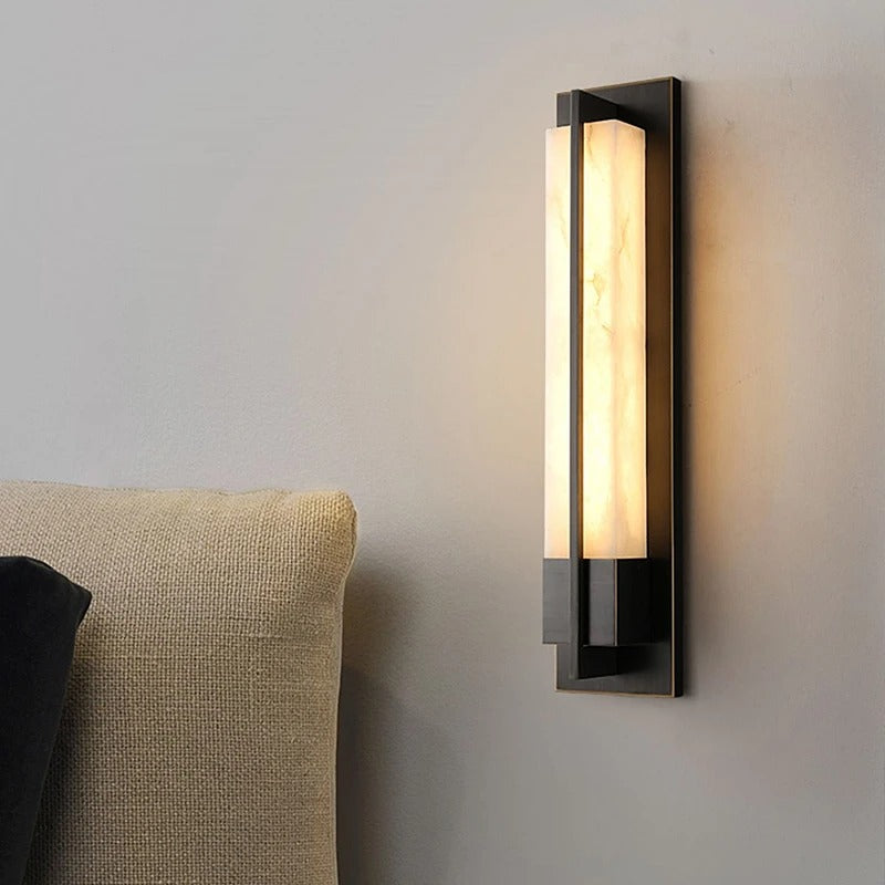 Designed with a sleek copper-toned brass frame and a hand-carved alabaster panel, this wall lamp brings a modern yet timeless luxury to interiors. The natural alabaster gently diffuses light, creating a warm, inviting atmosphere ideal for bedrooms, corridors, and refined living spaces. Its rectangular silhouette makes it especially suited for contemporary architecture, while its craftsmanship ensures enduring elegance and functionality.